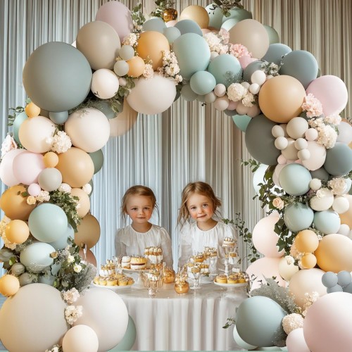 - Dusty Green Nude Pink Balloons Arch Kit: The dusty pink green arch balloon is a combination of sage green balloons, dark green balloons, blush balloons , nude balloons,sand white balloons,tan balloons, presenting a low-saturation Morandi color effect. It is pastel balloons arch kit. It is perfectly suitable for weddings, forest parties, art exhibitions and other scenes, and can easily create a high-end decorative atmosphere.