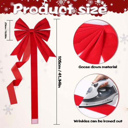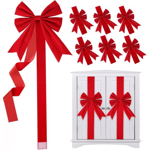 - Large Christmas Bows: Includes 1 large Christmas bows with extra-wide 17-inch red velvet ribbons! Pre-tied designs ,perfect shape, and sturdy nylon ties ensure secure attachment to handles in seconds.